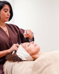 Un protocole de mésothérapie par microneedling avec un cocktail d’actifs vitaminés qui stimule la croissance, renforce la fibre capillaire, redonne de la brillance et réduit visiblement la chute des cheveux liée au stress ou aux déséquilibres hormonaux.